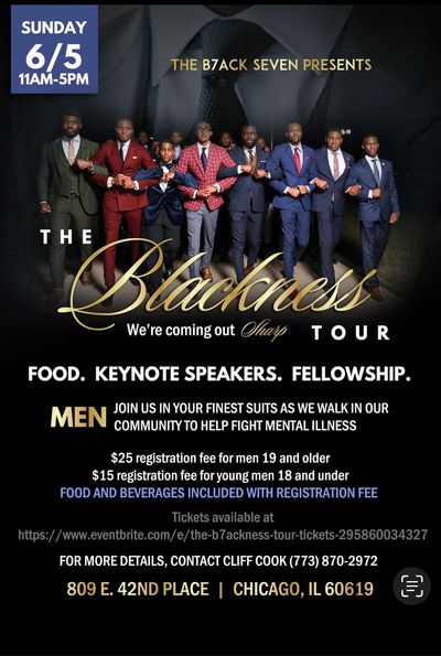 Presented by The B7ACK SEVEN. Help fight mental illness by walking in our community in your finest suit. Enjoy food, keynote speakers, and fellowship. See details below.